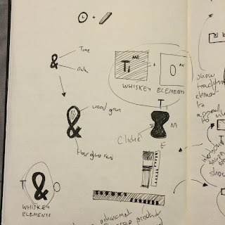 I also created another VERY rough sketch to represent customizable symbols with interlocking elements of an ice cube, whiskey glass and the wooden element. Kind of liked this.